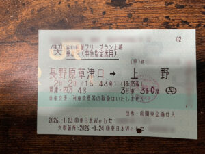 実際に妻と草津旅行へ行ってみて感じたのは、電車に乗ってしまえばあとは旅行が始まっているという感覚。長距離の運転疲れや渋滞もなく、妻はビールを片手にご機嫌で、現場仕事の疲れた身体が移動中からすでにリフレッシュされていました。